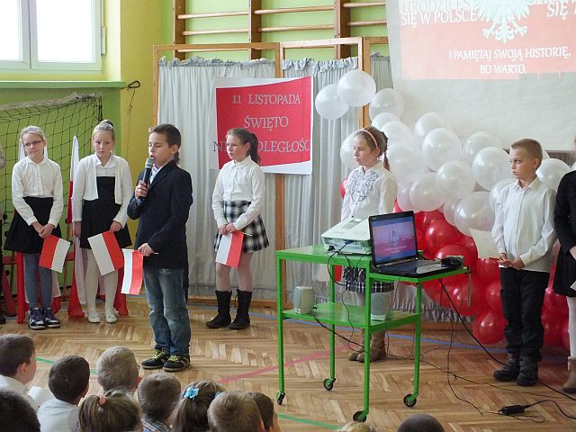 We wtorek 12 listopada odbył się apel dla klas IV-VI, podczas którego została zaprezentowana droga naszego kraju do Niepodległości po okresie rozbiorów. Przeprowadzony qiuz podczas którego poszczególne klasy mogły wykazać się swoją znajmością faktów historycznych a nauczyciele śpiewali przedwojenne piosenki dla uczniów.