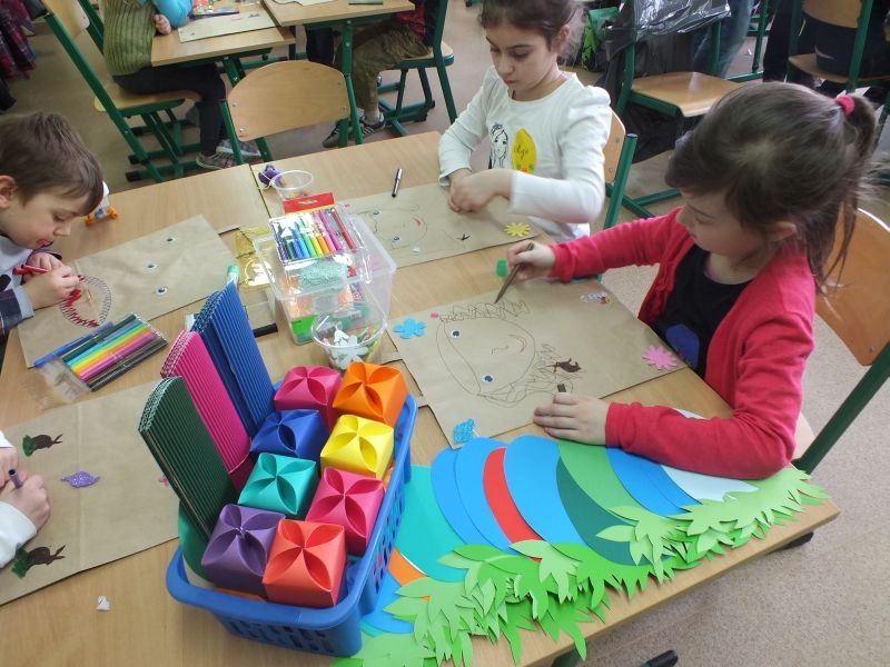 Dzieci miały okazję uczestniczyć w warsztatach edukacyjnych prowadzonych w formie zabawy o tematyce językowej, sportowej, plastycznej oraz matematycznej. Dzięki wsparciu finansowemu pozyskanemu ze środków Unii Europejskiej zakupiono wiele innowacyjnych pomocy naukowych, które umożliwiły prowadzenie zajęć w sposób ciekawy i efektywny. Zajęcia rozpoczęliśmy od zajęć językowych, podczas których dzieci miały okazję poznać się lepiej. Przygotowano wiele ciekawych konkursów językowych w których poprzez zabawę dzieci musiały się ze sobą komunikować. Przygotowano wiele atrakcyjnych konkurencji sportowych, które cieszyły się wyjątkowym uznaniem naszych milusińskich. Pokonanie „toru przeszkód” nie należało do najłatwiejszych ale po wyczerpujących zmaganiach każda z drużyn otrzymała pamiątkowy puchar. Na zajęciach plastycznych dzieci ozdabiały torby na upominki, zakładki do książek, oraz jajeczka. Każde dziecko było bardzo zaangażowane w upiększanie swoich małych arcydzieł. Nawet matematyki można się uczyć z uśmiechem na ustach. Zwłaszcza, że zajęcia prowadzone są w formie humorystycznej zabawy. Wiele frajdy daje również możliwość manipulowania różnymi przedmiotami. Dodatkowe pomoce edukacyjne znacznie ułatwiają takie zadanie nauczycielowi. Dodatkową atrakcją projektu była „zaczarowana torba” z której dzieciaki wyciągały nagrody niespodzianki, używając do tego wyłącznie zmysłu dotyku. Torba to świetna pomoc dydaktyczna, która posłużyła do nagradzania dzieci za wykonane zadania. Warsztaty plastyczne, wspólna nauka poprzez zabawę, trochę ruchu, poczęstunek i worek upominków to doskonały przepis aby zintegrować najmłodszych Europejczyków. Piotr Ciszewski