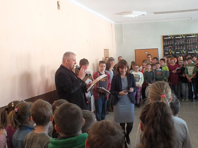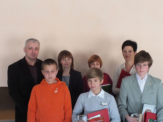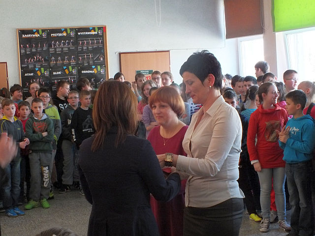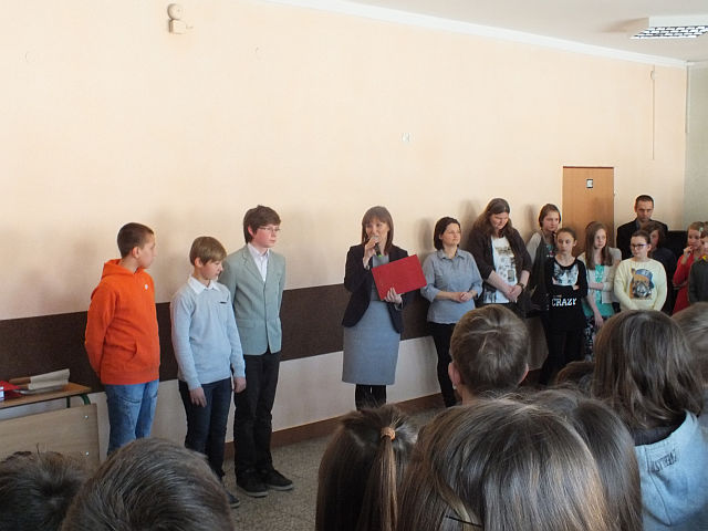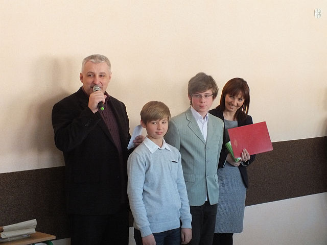 Listy gratulacyjne od pani kurator otrzymali pedagodzy, którzy przygotowali laureatów do konkursów p.Judyta Płocharz i p.Edyta Kantek. Do konkursów przedmiotowych w woj.lubuskim przystąpiło około 13 tysięcy uczniów. Do konkursów wojewódzkich zakwalifikowało się około 400. A tylko 128 uzyskało tytuł laureata. Wśród wszystkich miast woj. lubuskiego wynik uzyskany przez naszych uczniów uplasował Gubin na 7 miejscu w województwie. Dnia 27 marca 2014 r. w szkole odbył sie apel okolicznościowy. Nagrody laureatom wręczyła pani burmistrz Justyna Karpisiak. Podczas apelu uhonorowano również finalistów konkursów wojewódzkich: Jana Zietkę z języka polskiego - opiekun p.Ewa Wawrzyniak i Mateusza Gadeckiego z przyrody - opiekun p.Judyta Płocharz. Osiągniecia naszych uczniów widoczne sa również na szczeblu miejskim. W Festiwalu Przedmiotów Ścisłych organizowanych przez ZSO w Gubinie nasi uczniowie: Hubert Fyk, Jakub Wróbel, Jakub Rzucidło zajęli czołowe miejsca. Dyrektor szkoły Robert Siegel podziękował wyróżnionym uczniom za osiągnięte sukcesy oraz pedagogom za duży wkład pracy w przygotowanie laureatów i finalistów do konkursów przedmiotowych.